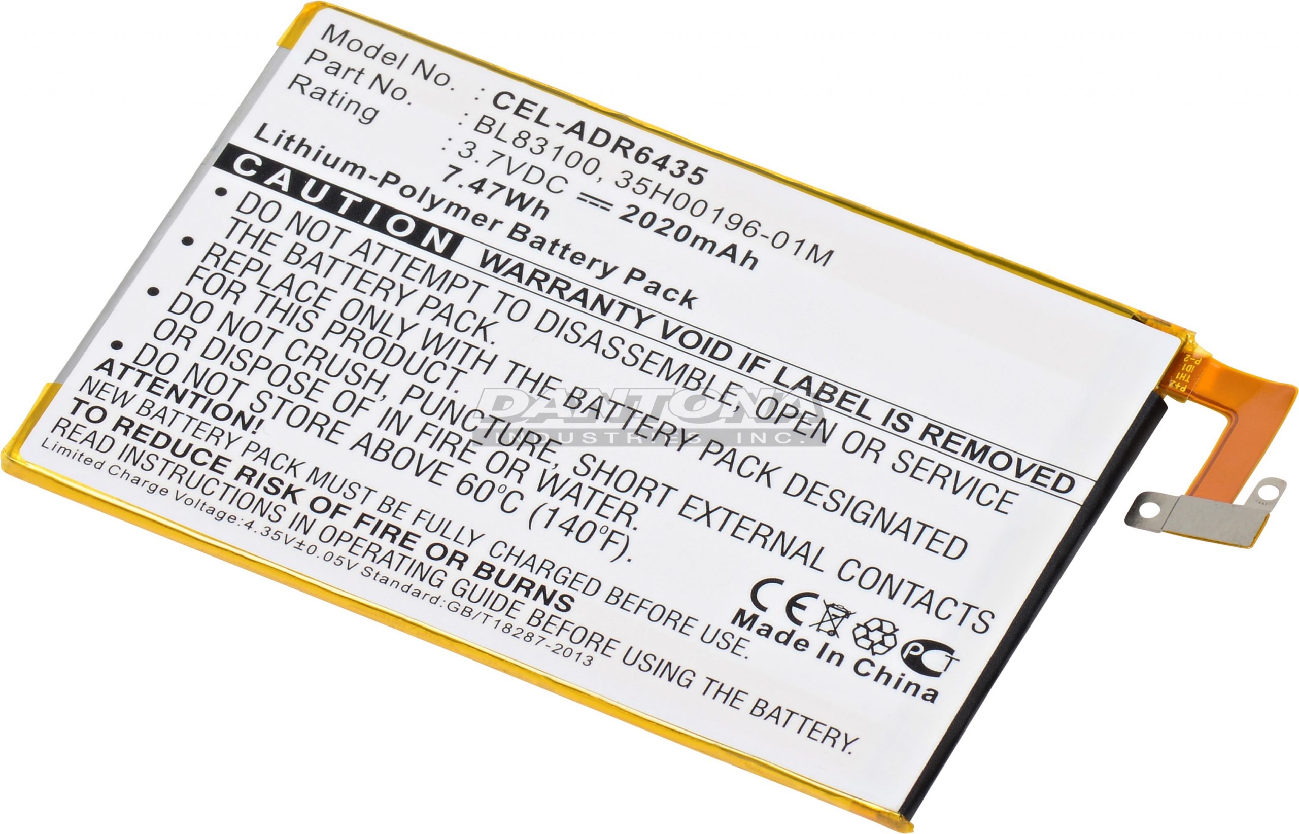 This replacement 3.7 Volt 2020mAh Lithium Ion battery fits the HTC 6435 LVW Cellular Phone and meets or exceeds original manufacturer specifications.