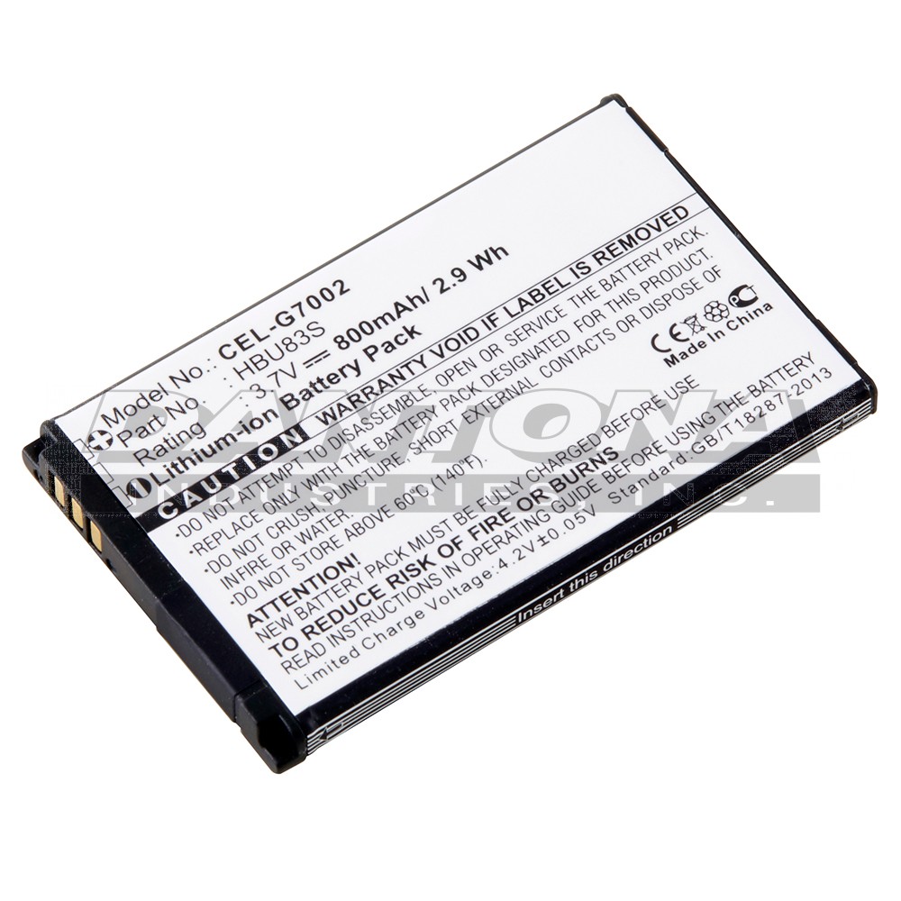 This replacement 3.7 Volt 800mAh Lithium Ion battery fits the Huawei A608 Cellular Phone and meets or exceeds original manufacturer specifications.
